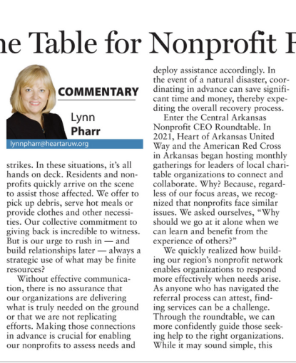 Heart of Arkansas United Way has strategically responded to our community’s needs for over a century,